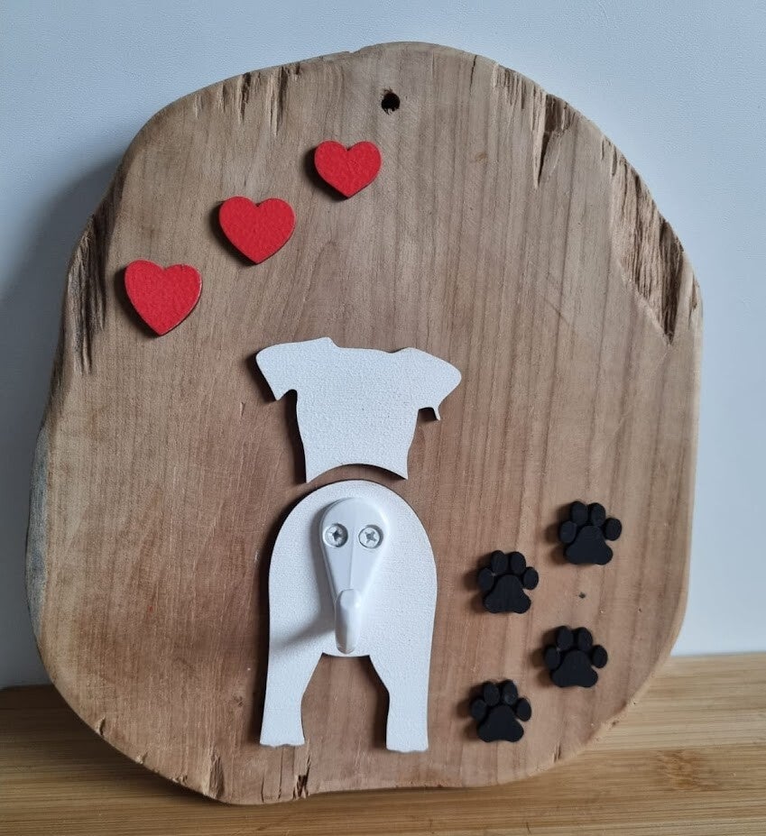 Unsere handgefertigte Hundegarderobe aus Holz ist ein praktisches und stilvolles Accessoire für Hundeliebhaber. Hier sind einige Details zu unserer einzigartigen Hundegarderobe: